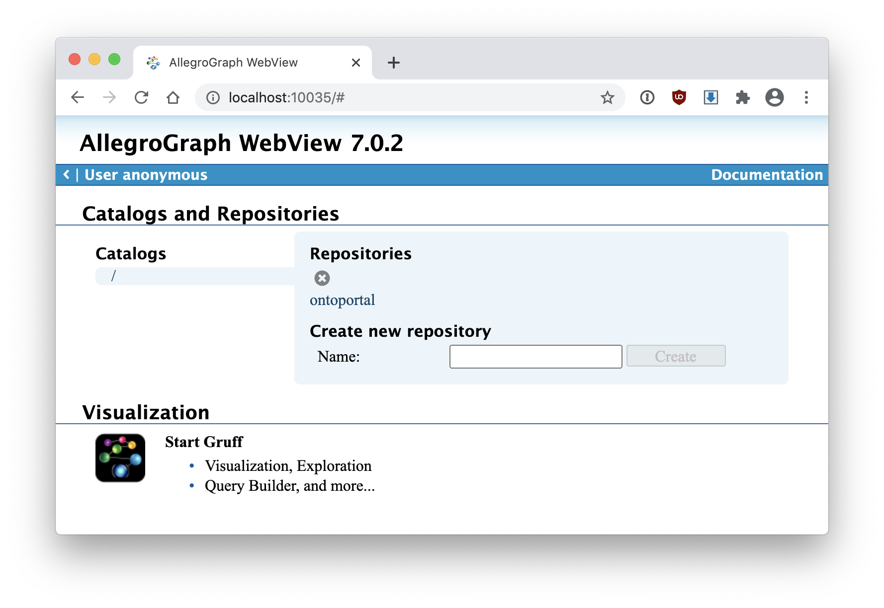 Once AllegroGraph is running, navigate to the AG Admin console. By default it runs on port 10035: