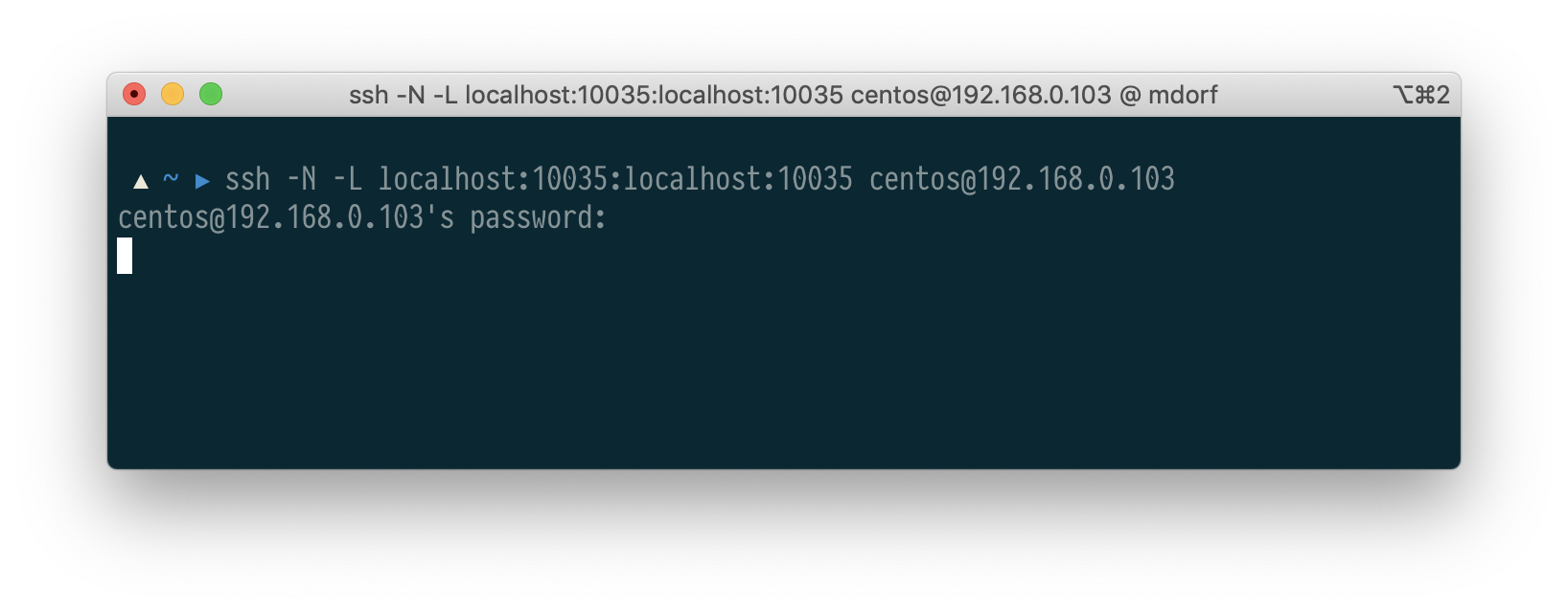 ssh -N -L localhost:10035:localhost:10035 centos@<IP address of your VA>